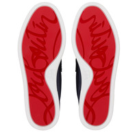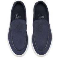 The Moonboat loafer has clean lines and features a supple contruction. Crafted from unlined Zaffiro navy nubuck leather, this model is set on a white rubber sole. This shoe stands out thanks to its iconic Maison Christian Louboutin's CL monogram. Product information Reference: 32504184320 Color: Zaffiro Material: Reversed nubuck leather