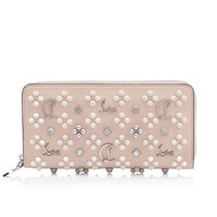 The Women’s Panettone wallet is a long-line wallet with a spacious interior. It has a variety of pockets for different purposes. This model is crafted in leche beige calf empire leather and is embellished with signature tonal Maison Christian Louboutin Loubinthesky spikes. - 1 zipped pocket - 16 card slots - Press stud and zip fastening - 6 flat pockets - 1 bill pocket - Dimensions: H 100 x L 195 x W 25 mm Product information Material: Calf leather Color: Leche Reference: 3175224F609 Dimensions: 3.9 x 7.9 x 1.2 inches Collection: Fall Winter 23