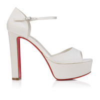 With its open toe, the Sandaloo elegantly reveals the foot. This platform sandal by Maison Christian Louboutin features a slim ankle strap and is set on a 130 mm square heel. Part of the bridal collection, it is entirely crafted from Ivory white crepe satin. Product information Reference: 3240439W446 Color: Ivory Material: Crepe satin Heel Height: 130 mm