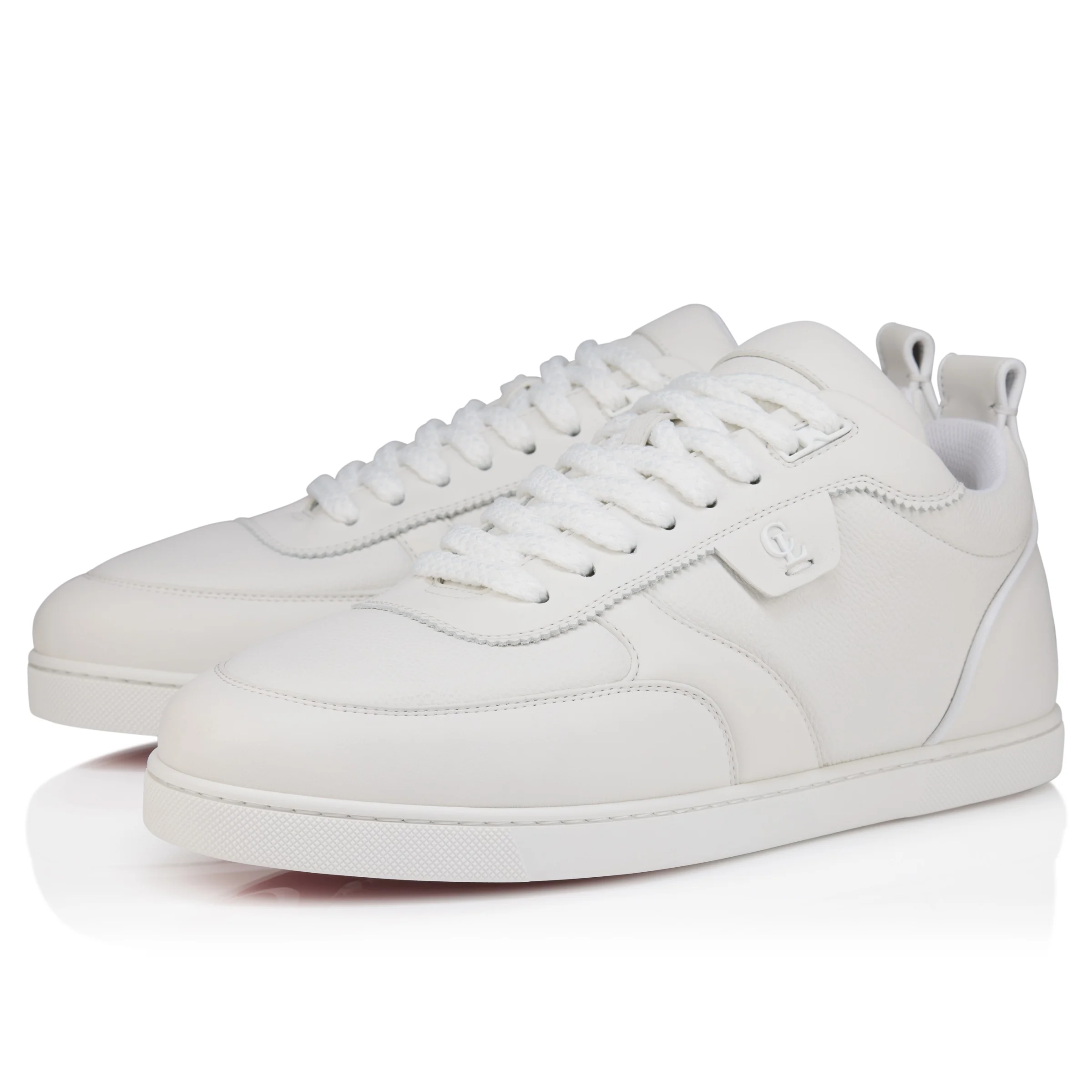 The SK VI urban flat sneaker offers an elegant outline that elevates any outfit. This model takes its name from 'SK', short for 'skate', capturing its bold urban spirit while 'VI', a nod to 2026, marks a new chapter of creativity. Crafted in white grained calf leather, the textured detail on the upper is enhanced by the Maison Christian Louboutin Canopy signature on the heel, while each step offers a glimpse of Loubi red. This shoe features a practical heel tab and the new metallic NeoCL signature. Product information Reference: 1260837WH01 Color: White Material: Calf leather