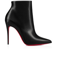 Combining simple elegance with clean lines, the So Kate Booty has become a true icon of Christian’s design repertoire. Curved lines gently encase the foot, secreted by a zip closure, and plunge down to a pronounced vamp ending in a winklepicker point. The sophisticated upper perches atop a wearable 100-mm stiletto heel that elongates the leg. This season’s iteration comes in a vampish black calfskin leather, lined with signature red. Product information Material: Calf leather Color: Black Reference: 1140505BK01 Heel height: 100 mm Collection: Summer 14