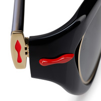 So Kate LB0003 is one of the most iconic styles of this sunglasses collection. The frontal profile is inspired by the shape of the red sole. Metal eye rim profile enrich the acetate of the frontal and crafted metal with palmette pattern is a detail that embellish the temples. This model is made in a black and pale gold color and gradient smoke lenses. High-performance Zeiss lenses offering exceptional quality comfort and durability for Christian Louboutin collection. Designed to make a lasting impression. The frontal profile is inspired by the shape of the iconic Louboutin red sole. The meticulously crafted curves of the frame front are reminiscent of the architectural splendor of iconic landmarks, making these glasses not just an accessory, but a statement piece. Metal eye rim profile enrich the acetate of the frontal and crafted metal with palmette pattern is a detail that embellish the temples. This Art Deco-inspired frame is perfect for those who appreciate the finer things in life and aren't afraid to make a statement, a perfect blend of classic sophistication and contemporary style. Made in Italy. Product information Reference: 1255337K199 Color: Shiny Black Material: Acetate Lens width: 55 mm Bridge length: 18 mm Temple length: 135 mm Category of filtration: 2