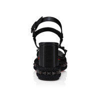 The Superaclou receives a new 85 mm heel height this season. Crafted from black lamb nappa leather, the toe and ankle straps are adorned with mini pyramids and the sole is crafted from spikes and rope, evoking an Eastern theme. The iconic Maison Christian Loubi red sole adds the finishing touch to this contemporary sandal. Product information Reference: 3250424B439 Color: Black Material: Lamb nappa leather Heel Height: 85 mm