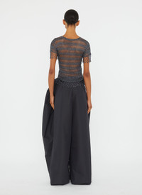 The Cocoon Belted Taffeta Trouser is a voluminous reworking of tailored proportions, cut in lightweight technical taffeta. Defined by exaggerated pleats and a detachable belt that cinches the waist, the silhouette balances structure with fluid movement. A directional take on classic wide-leg tailoring, engineered for versatility and sculptural ease. Pair with sculptural knitwear or layered shirting for a directional approach to day-to-evening dressing. - Wide-leg trouser in lightweight technical taffeta - Exaggerated pleats for sculptural volume - Detachable tonal belt with metal buckle fastening - Mid-rise waist with tailored waistband construction - Full-length cut with relaxed drape - Concealed zip and hook closure at front - Main: 53% Polyamide 47% Cotton - Belt: 100% Cow Leather - Dry Clean Only Model is 179cm/5'10.5" and wears size AU 8 (US 4) AU sizing
