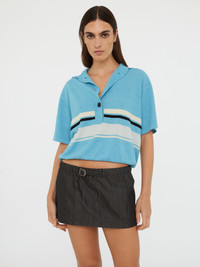 A canvas of crushed cotton is refined by belt detailing and small buckle fastenings that punctuate the waist. This micro mini skirt sits low at the waist, infused with fine metal yarns that hold its crushed form. - Crushed cotton infused with fine metal yarns - Fine belt detailing - Small buckle fastening - Low rise waistband - Micro length - True to size - 68% Cotton 32% Metal - Dry clean only Model is 179cm/5'10.5" and wears size AU 8 (US 4) AU sizing
