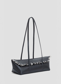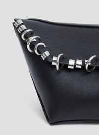 An structured silhouette softened by leather and pierced with polished hardware. The Gondola Pierced Mini Tote features a long rectangular body suspended by twin leather straps, with custom rings threaded along its top seam. - Structured rectangular silhouette - Pierced hardware detail in mixed custom rings - Magnetic top flap closure - Smooth leather outer with structured feel - Main: 100% Cow Leather - Hardware: 100% Copper