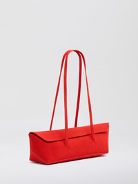 Form and function combines with this mini suede tote bag. Designed with sculptural folds and peaks, its minimal flap opening can be tucked in to reveal an embossed custom logo. - Made in Spain from Italian sourced Leather - Minimalist flap opening - Elongated shoulder straps - Contains detachable mini purse - Custom Embossed Logo - Suede Lining - 100% Calf Leather Suede - Dimensions: Width - 30cm Height - 12.5cm Depth - 12cm Top Width - 41cm Shoulder Strap - 30cm