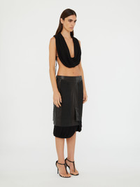 An interplay of fluidity and structure. Constructed in draped jersey, this cropped top features a cascading cowl front that elegantly frames and exposes the decolletage, finished with an adjustable tie detail at the side. - Draped cowl neckline - Adjustable side tie detail - Cropped silhouette - Lightweight, fluid jersey construction - Composition: 100% Viscose - Dry Clean Only - Low Iron, Low Steam Model wears size AU 8 (US 4) AU sizing