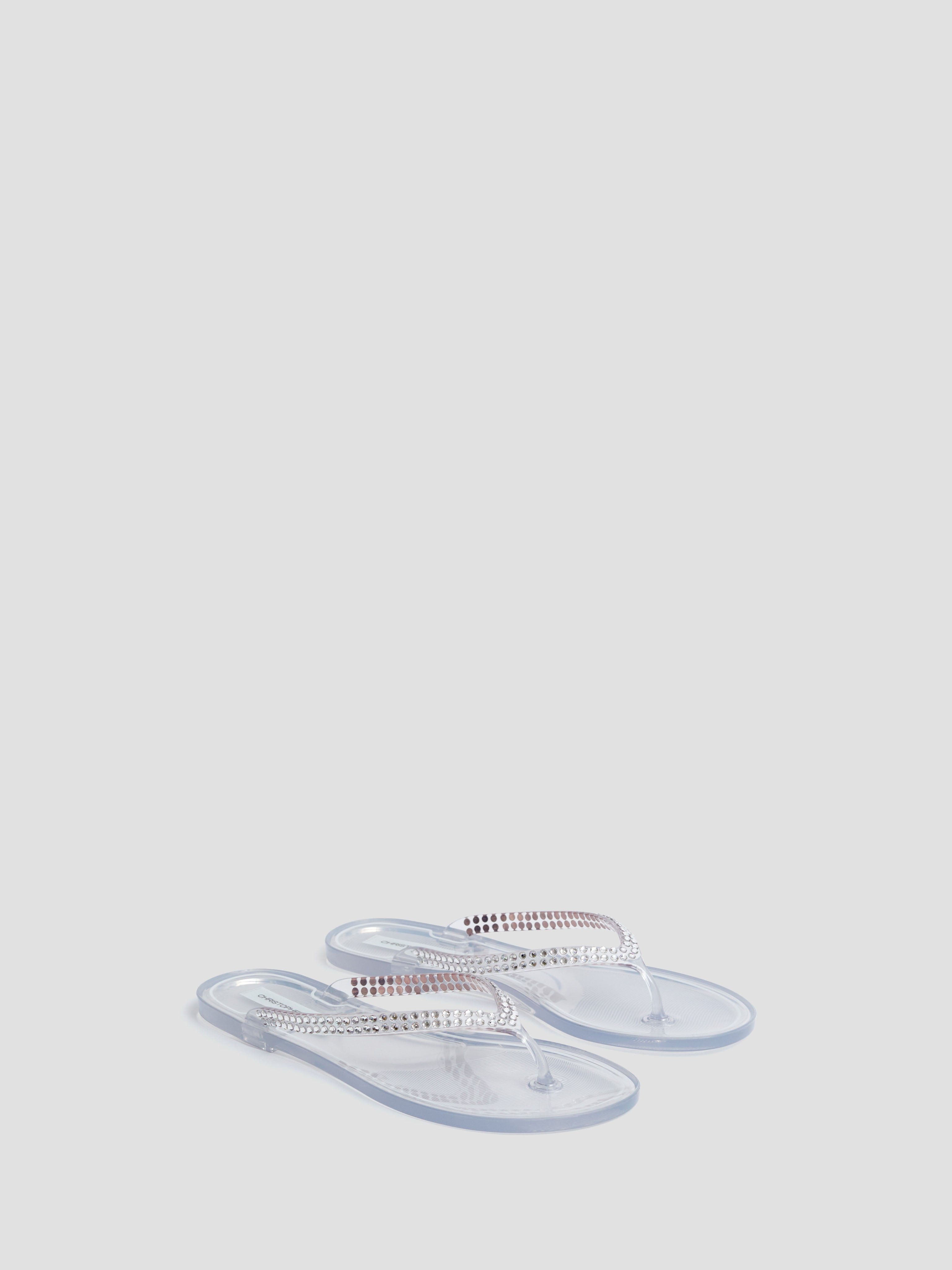 A minimalist tonal flip flop that slips on with ease. Hand crafted in Italy made in a semi- transparent, jelly-like 100% PVC. Please note, this style runs small. We recommend sizing up a full size.  - Made in Italy - Water resistant - Jelly-like texture - Slip on style - 100% PVC - EU sizing