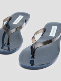 A minimalist tonal flip flop that slips on with ease. Hand crafted in Italy made in a semi- transparent, jelly-like 100% PVC. Please note, this style runs small. We recommend sizing up a full size. - Made in Italy - Water resistant - Jelly-like texture - Slip on style - 100% PVC - EU sizing