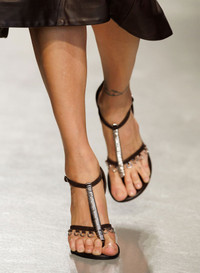 Constructed in suede leather with sculpted insole and stiletto heel, framed by hand-applied hardware through the toe bridge and ankle strap. Balancing structure with fluidity through suspended silver tone rings. - Suede leather upper - Hardware embellishment through toe bridge - Sculptural silver tone rings suspended from front strap - Slender ankle strap with adjustable buckle closure - Open toe fit - Stiletto heel - Made in Italy Footwear is in IT sizing