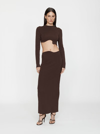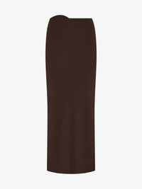 Crafted from rib stretch jersey in a high-waisted silhouette. Designed to mirror the contours of the torso, its organic waistband frames the body with sculptural precision. Best styled with the coordinating Wave Crop Top for a cohesive evening look. - High-waisted midi skirt in ribbed viscose - Sculptural, curved waistband design - Slim column cut - Pull-on style with no fastening - Main: 80% Viscose 20% Nylon Model is 179cm/5'10.5" and wears size AU 8 (US 4) AU sizing