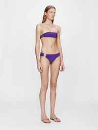 The Mineral Stone Side Ruched Low Brief is crafted in matte stretch lycra and defined by asymmetric gathering adorned with signature brass hardware set with natural mineral stone. Designed for a low-rise fit and minimal coverage to contour the hips. Style with the Mineral Stone Side Ruched Bandeau for a refined swim pairing. - Asymmetric ruched detailing - Low-rise waistline - Minimal coverage - Signature brass hardware with natural stone - Matte stretch lycra fabrication - Main: 72% Polyamide, 28% Elastane - Hardware: 100% Brass with Natural Stone Model is 180cm/5'11" and wears size AU 8 (US 4) AU sizing