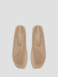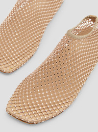 An artisanal mesh, slip-on ballerina flat. Italian craftsmanship is revealed in the precisely hand applied glass crystals. - Crafted in Italy - Mesh netting with hand applied crystal embellishment - Sock-like slip on silhouette - Elasticated ankle opening for ease of wear - Upper: 93% Polyester 7% Spandex with Glass Crystal - Sole: 100% Cow Leather Footwear is in IT sizing