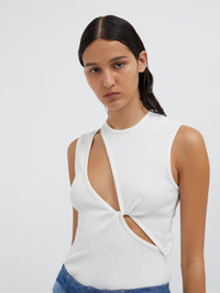 96% Polyester 4% Spandex Luxe stretch rib Asymmetric cut out detailing True to size Dry clean only Scarlett wears a size 8 Aus Height 175cm/5”8.5”