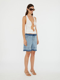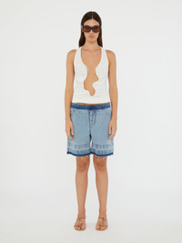 A Christopher Esber signature is reimagined into a tank silhouette. Crafted from dry jersey, this ruched tank is artfully constructed with a sculptured wire cut-out and bespoke copper hardware. - Sculpted wire wave formation hardware - Tank silhouette - Pull over style - True to size - Main: 100% Viscose - Hardware: Copper Model is 180cm/5'11" and wears size AU 8 (US 4) AU sizing
