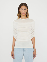 - 95% Viscose 5% Elastane, 100% Silk - Sheer rib - Soft stretch silk tulle across the bust - Slim fit - Pull over style - True to size - Dry clean only