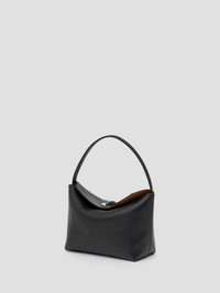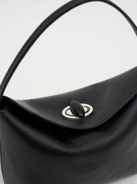 A slouchy mini hobo bag crafted in a smooth Italian sourced Sheepskin Nappa. Its fine strap can be slung over the shoulder or carried by hand. Anchored by a Black Agate Turnlock hardware that enhances strength and protection. - Softly structured Sheepskin Nappa Magnetic turnlock hardware Fine fixed shoulder strap Silver embossed logo patch interior Featured Stone: Black Agate - enhances strength and protection 100% sheepskin Napa, lining: 100% cow leather, hardware: 100% brass with natural stone Dimensions: Width - 18cm Height- 11cm Depth - 9cm Shoulder drop - 14cm