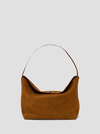 A slouchy shoulder hobo bag crafted in smoothly textured, Italian sourced goat suede. Its fine strap can be slung over the shoulder or carried by hand. Anchored by a Black Agate turnlock hardware that enhances strength and protection. - Softly structured goat suede - Magnetic turnlock hardware - Fine fixed shoulder strap - Silver embossed logo patch interior - Featured stone: Black Agate - enhances strength and protection - 100% goatskin, lining: 100% cow leather, hardware: 100% brass with natural stone - Dimensions: Width - 26cm Height- 20cm Depth - 14cm Shoulder drop - 15cm