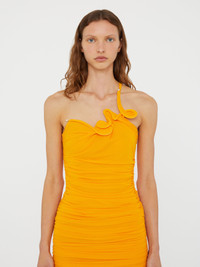 Sculptural hardware anchors fine Italian jersey to form around the body. Ruched gently at the side seams, this mini dress is finished with pearlescent studs. - Hand crafted hardware - Sculpture wave across the chest - Asymmetric neckline - Multi functional - Invisible Zip - Smooth, mesh fabrication - Main: 90% Polyamide 10% Elastane - Hardware: 100% Zinc Alloy Hardware - Hand wash in warm water - True to size Claire is 179cm/5'10.5" and wears size AU 8 (US 4) AU sizing