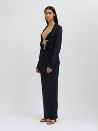 - 90% Nylon 10% Lycra with Brass hardware - Smooth, mesh fabrication - Hand crafted hardware - Sculpture wave cutout across torso - Sleeve cuffs - Invisible zip - Dry clean only - True to size Scarlett wears a size 8 Aus Height 175cm/5”8.5”