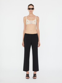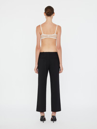 A delicate interplay of transparency and texture. A minimal bralette refined by floral embroidered cotton lace encased in binding. Featuring a soft, curved neckline and a straight hem, its semi-sheer construction is suspended from fine straps. - Scooped neckline with no underwire - Floral embroidered motif - Pulls over body - Main: 51% Polyamide 49% Cotton - Binding: 96 Polyester 4% Spandex - Dry Clean only Claire is 179cm/510.5" and wears size AU 8 (US 4) AU sizing