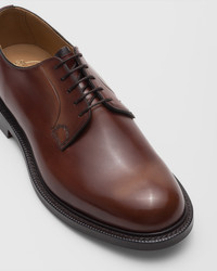 Debonair elegance with impeccable design: Church's turns a classic Derby lace-up into a masterpiece of artisanal expertise. A coveted style since its inception in 1974, the sleek Shannon is introduced in hand-bleached calfskin that creates subtle shading on the upper, enhancing the intensity of the colour. Relaxed in spirit yet refined in execution, this style elevates the traditional Derby shoe, historically seen as a sporty evolution of the more formal Oxford, into a sophisticated design that can match special occasions and city life alike, thanks to its diamond rubber sole. Made in Northampton, England, using the Goodyear method. • Product code: EEB001_9ADC_F0AXO_F_000000 • Lace-up Derby model with hand-sewn details • Crescent stitching detail on the end of the lacing • Upper in bleached calfskin finished entirely by hand • Bellows nappa tongue • Triple leather sole • Lined model for maximum shoe durability • Goodyear construction with water-saving welt • Imported product