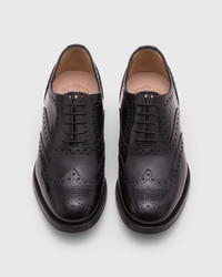 Taking its cues from the men’s Burwood, this feminine version tows an androgynous line. It features the same exquisite brogueing and subtle gimping, layering this shoe with rich details. Buffed to a high-shine achieved with our polished binder treatment, it leaves a sophisticated impression that’s at home in the boardroom or in even paired with slim evening wear. A diamond rubber sole offers added traction for moving around the city.Leather liningHeat-stamped logo on the insoleWaxed round lacesLeather and rubber sole printed with Church's logoStitched, smooth leather weltLeather insoles • Product code: DE0001_9XV_F0AAB_F_B000 • Full brogue lace-up oxford • Calf leather with polished binder finish • Waxed cotton laces • Blind eyelets • Diamond rubber sole • Internal lining for longevity of wear • Blake construction • Handwritten shoe info to lining • Church’s crest to sock and sole • We advise to purchase a half size smaller than your usual size • Imported product
