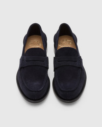 A classic penny loafer, the Pembrey is your go to dress down shoe. Crafted on the 126 last from supple castoro suede, the split toe and heel counter detailing bare a casual ease whilst the gimped tongue and double-stitched apron evince artisanal subtleties. A folded topline and absence of lining enhance comfort, making the Pembrey an effortlessly elegant slip on shoe, perfect for warmer climes. ------Made in Northampton, England. • Product code: EDB003_9VE_F0ABM_F_000000 • Penny loafer with hand stitch detail to sides--- • Suede upper--- • Gimping to vamp--- • Heel counter detailing--- • Folded top line for maximum comfort--- • Last 126--- • Leather sole--- • Unlined for softness--- • Handwritten shoe info to inner vamp--- • Goodyear construction--- • Church’s crest to sock and sole • Imported product