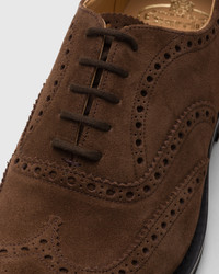 Soft, velvety suede brings casual charm to the Amersham LW. Built on the 81 last, one of our longest standing forms, its construction is loyal to the classic Oxford shoe. A slightly shorter forepart gives it a shallower fit, creating a more traditional look than our slim, elongated shapes. Full brogueing and a round toe add to its gentlemanly character. Combine its plush texture and rich detailing with wool, denim or hardy cottons. Tapered trousers will enhance its sophisticated side. A lightweight Dainite double-sole with a dotted surface provides exceptional comfort and grip. • Product code: EEC304_9VE_F0ADV_F_000000 • Full brogue lace-up oxford--- • Suede upper--- • Cotton laces--- • Blind eyelets--- • Last 104--- • Lightweight Dainite double-sole--- • Internal lining for longevity of wear--- • Handwritten shoe info to lining--- • Goodyear construction--- • Church’s crest to sock • Imported product