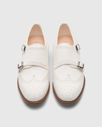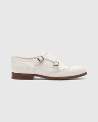 A classic men's wardrobe staple is now reimagined through a feminine lens in the Lana 2 design, crafted with a slimmer, sophisticated silhouette. A wing tip design, classic brogue pattern, and double buckle convey a vintage sensibility, while the premium, ultra-soft deerskin upper showcases Church's artisanal excellence. An inherently British and dandy charm permeates the buckled Monk Strap style, initially inspired by the shoes worn by the monks during their daily duties but soon evolved towards a distinct and unique aesthetic. • Product code: DO0013_9DT_F0ALL • Monk model with full brogue upper • Double steel buckle closure • Upper in very soft deerskin • Light leather sole with natural finish • Church's logo on insole and sole • Imported product