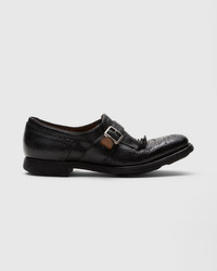 Taking averagely 200 steps to complete, the Shanghai Monk Strap shoe embodies the highest expression of Church's artisanal heritage. Sporting traditional features such as the raised toe, front fringes, and exquisite English brogue detailing, this women's style is crafted from glace calf leather, specifically treated to create a game of hues and textures that emphasises the shoe's distinctive vintage look. Styled through a contemporary lens, this model can suit classic and avant-garde combinations, revealing a versatile and timeless essence. • Product code: DO0008_9PW_F0AAB • Loafer with side buckle • Glace calf leather with broguing • Raised toe spring • Vintage rubber sole with rivets • Internal lining for longevity of wear • Vintage Church's label to lining • Church's crest to distressed inner sock • Vintage logo to sole • Imported product