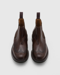 A classic Chelsea boot with full brogue perforations, the McEntyre LW reworks its countryside roots with formal detailing. Soft grain calf leather introduces further texture to this rich shoe. This multi-purpose style will have no trouble fitting into professional settings, or bringing a sense of sophistication to your weekend wardrobe. Elasticated inserts, a cotton pull tab and a lightweight sole echo its equestrian heritage without compromising its modernity. Polished as well as practical, it is built for grip, weather protection and durability, thanks to an internal lining and a rugged sole with a storm welt. • Product code: ETC206_9FQ_F0AEV_F_000000 • Full brogue Chelsea boot with elasticated side insert --- • Highland grain calf leather with natural finish --- • Cotton pull-on tab to back --- • Last 133--- • Lightweight rubber sole--- • Internal lining for comfort and longevity of wear--- • Handwritten shoe info to lining --- • Goodyear construction with storm welt --- • Church's crest to sock and sole • Imported product