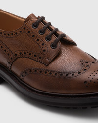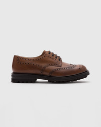 Reminiscent of historical styles, the McPherson LW is a perfect example of a traditional derby shoe. Its finely grained calf leather is detailed with luxurious longwing brogue perforations and polished to a natural shine. Robust despite its refined detailing, a lightweight rubber sole and a storm welt contribute to its chunky silhouette while offering added traction and protection from moisture. An excellent way to add character to casual clothing, this rugged lace-up will introduce charm to chinos and jeans, rolled up to expose statement socks. • Product code: EEC301_9FQ_F0AAR_F_000000 • Full brogue lace-up derby--- • Grain leather with natural finish--- • Calf leather bellow tongue--- • Woven cotton laces--- • Metal eyelets--- • Last 133--- • Lightweight St Moritz sole--- • Internal lining for longevity of wear--- • Handwritten shoe info to lining--- • Goodyear construction with storm welt--- • Church’s crest to sock • Imported product