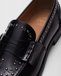 A true archetype of British style, Pembrey is the quintessential college-inspired penny loafer. It perfectly combines a spontaneous, youthful feel with a sophisticated design, perfect for dandy, extravagant spirits and lovers of traditional and academic styles. Enhanced by a precious, polished fume finish, the calfskin upper features silver-coloured studs for an unexpected accent reminiscent of London's youth subcultures. The hand-stitched seams and serrated edge reflect the attention to detail and high craftsmanship that have become synonymous with Church's. • Product code: DD0091_9EM_F0AAB • Penny loafer with hand stitch detail to sides • Polished fume calfskin • Silver-tone buckles • Internal heel support detail • Folded topline for maximum comfort • Non-slip rubber sole • Lined for maximum durability • Blake construction • Information on the hand-drawn shoe on inner vamp • Church's badge on insole and sole • Imported product