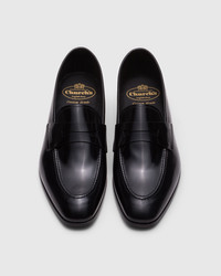 The unlined construction in ultra-soft calfskin envelops the foot like a second skin, while the upper enriched with unique detailing adds a refined touch to the Maesteg loafer—such as the Adler apron-toe seam, named after the machine used to obtain this specific stitching. A distinctive Church's style updated each season into new variations, the loafer stands as a true archetype of English style, originally evolving from the slippers created for King George VI. • Product code: EDB142_9EM_F0AAB_F_000000 • Very soft loafer with Adler apron-toe seam • Polished fume calfskin • Unlined • Leather sole with nubuck finish • Soft Blake construction for extraordinary flexibility • Logo Church's • Imported product