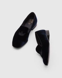 The Sovereign 2 loafer captures all the regal sophistication of the historical slippers it’s inspired by. Worn by nobility in the 1800’s, these ornate items were crafted in sumptuous velvet to match equally ostentatious loungewear. Reinterpreted as a fashion item with luxurious leanings, it features a ‘King John Crown’ crest embroidered onto the upper, echoing the shoe's English heritage. Finished with a grosgrain edge and lined in quilted silk for comfort. A short block heel adds a sense of formality, making it appropriate for evening events.------Made in Northampton, England. • Product code: ES0042_9WQ_F0AHD_F_000000 • Loafer with black crown embroidery to vamp--- • Velvet upper--- • Grosgrain topline--- • Last 54--- • Leather sole--- • Quilted silk lining--- • Church’s crest to sock and sole--- • We advise to purchase a half size bigger than your usual size • Imported product