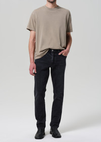 The Adler is our slim straight fit—cut with a slightly higher rise, room through the thigh, and a subtle taper from knee to ankle. Crafted from heavyweight comfort stretch denim with a soft hand, this pair is finished in a marbled black wash with subtle fading and whiskering for a broken-in, lived-with look. This fit is true to size. Looks Like: Medium to dark black denim Feels Like: Comfort stretch, signature archive denim with a super soft hand for all day wearability DETAILS Closure: Zip Fly Rise: 10 1/2” Inseam: 32 1/2” Leg Opening: 14 1/4” Model is 6'1" and is wearing a Size 32 Fabric Content: 98% Cotton 2% Elastane Care Instructions: Machine wash cold inside out with like colors. Do not bleach. Tumble dry low. Made in USA with imported materials 6190-1693_GROTT