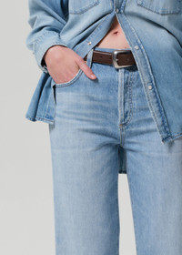This best-selling, trouser-inspired silhouette is designed to sit high on the waist with a flattering, ultra-relaxed straight leg. Crafted from 100% regenerative cotton, it offers a structured yet effortless drape with a full-length 33” inseam for an elongated look. Style it with a sleek bodysuit for a streamlined effect or keep it classic with a tee and lightweight layering piece. For a shorter inseam, shop the Annina High Rise Wide Leg 30". This non-stretch fit is intended to be relaxed. Size down for a higher, closer fit. Looks Like: Light indigo denim with fading and whiskering Feels Like: N on-stretch denim has vintage character with a super soft hand and lightweight feel This product is made with regenerative cotton from Citizens of Humanity Group’s Regenerative Cotton Program. Our program collaborates closely with farmers both domestically and internationally, nurturing growth, fostering education, and encouraging the widespread adoption of regenerative agricultural practices. DETAILS Closure: Button Fly Rise: 11 3/4" Inseam: 33" Leg Opening: 20 1/2" Model is 5'10" and wearing a size 27 Fabric Content: 100% Regenerative Cotton Care Instructions: Machine wash cold inside out with like colors. Do not bleach. Tumble dry low. Made in USA with imported materials 1746-1136_TULA