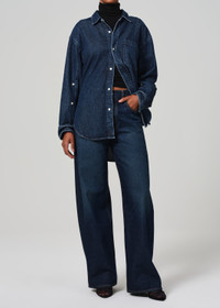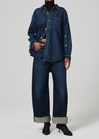 Inspired by a reworked vintage silhouette - our Ayla offers a slightly relaxed but flattering top block into a roomy untacked cuffed leg that can also be worn uncuffed. This style is true to size and intended to sit relaxed at the natural waist. For a higher and closer fit, we recommend sizing down. Looks Like: Classic dark indigo Feels Like: Rigid cotton From our HUMANITY Collection DETAILS Closure: Button Fly Rise: 12 1/2" Inseam: 32" Leg Opening: 21" Model is 5'10" and wearing a size 27 Fabric Content: 100% Regenerative Cotton Care Instructions: Machine wash cold inside out with like colors. Do not bleach. Tumble dry low. Made in USA with imported materials 2053-769_BRAVO