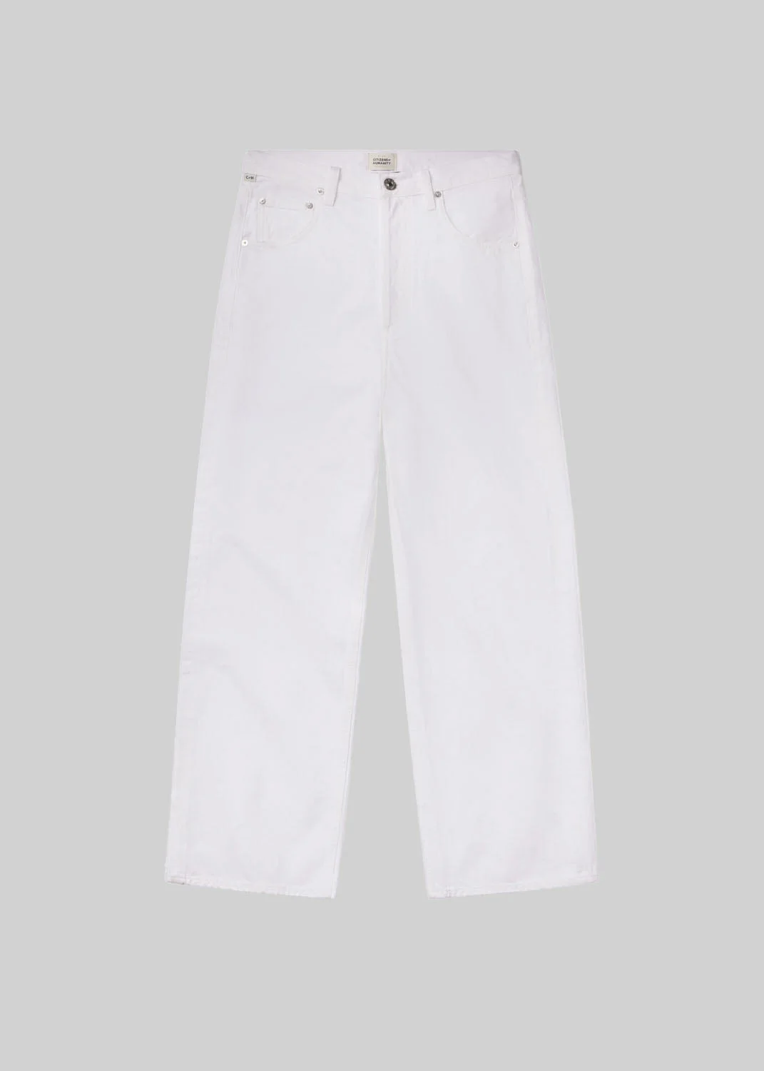 Inspired by a reworked vintage silhouette, the Ayla Jean strikes the perfect balance between relaxed and refined. Designed with a flattering yet easy top block, it falls into a roomy, untacked cuffed leg that can also be worn uncuffed for a versatile look. Crafted from a sustainable blend with beautiful drape, its oversized fit feels effortlessly chic on all heights. Style it your way—rolled, straight, or somewhere in between—for a look that’s uniquely yours. This style is true to size and intended to sit relaxed at the natural waist. For a higher and closer fit, we recommend sizing down. This fit is true to size. Looks Like: Clean white denim Feels Like: Rigid, non-stretch denim with an authentic feel From our HUMANITY Collection DETAILS Closure: Button Fly Rise: 12 3/8" Inseam: 32" Leg Opening: 20 1/2" Model is 5'10" and wearing a size 27 Fabric Content: 100% Cotton Care Instructions: Machine wash cold inside out with like colors. Do not bleach. Tumble dry low. Made in USA with imported materials 2053C-1248_CAYON
