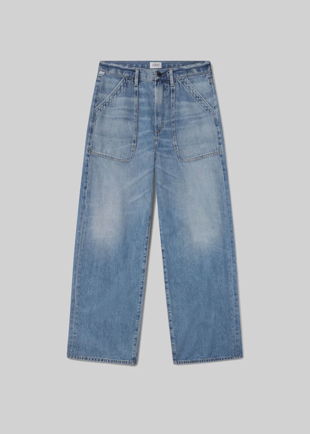 The Ayla Cargo Denim builds off our best-selling Ayla silhouette, featuring an articulated ankle and stylish utility pockets for a modern twist on a classic. With a full-length inseam and crafted from regenerative cotton, this versatile cargo combines the comfort of denim with a utilitarian edge. Perfect for adding a laid-back yet elevated touch to any outfit. This fit is true to size. Looks Like: Light to medium indigo denim with fading and whiskering Feels Like: Rigid, non -stretch regenerative cotton with a soft hand feel This product is made with regenerative cotton from Citizens of Humanity Group’s Regenerative Cotton Program. Our program collaborates closely with farmers both domestically and internationally, nurturing growth, fostering education, and encouraging the widespread adoption of regenerative agricultural practices. From our HUMANITY Collection DETAILS Closure: Zip Fly Rise: 12 1/4" Inseam: 30" Leg Opening: 22" Model is 5'10" and wearing a size 27 Fabric Content: 100% Regenerative cotton Care Instructions: Machine wash cold inside out with like colors. Do not bleach. Tumble dry low. Made in USA with imported materials 2185-1136_ZENTH