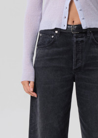 The ‘Ayla’ offers a refined take on the baggy silhouette with a relaxed fit that sits away from the body while maintaining a clean, intentional shape. The ‘Bronson’ wash is a washed-out black with soft fading and a raw hem, lending a subtle edge to the cropped length. Crafted from rigid regenerative cotton with a soft hand, it styles effortlessly with everything from crisp shirting to slim knits. This style is true to size and intended to sit relaxed at the natural waist. For a higher and closer fit, we recommend sizing down. Looks Like: Washed out dark black denim pant with raw hem Feels Like: Rigid, non-stretch cotton denim with a soft hand for all day wearability This product is made with regenerative cotton from Citizens of Humanity Group’s Regenerative Cotton Program. Our program collaborates closely with farmers both domestically and internationally, nurturing growth, fostering education, and encouraging the widespread adoption of regenerative agricultural practices. From our HUMANITY Collection DETAILS Closure: Button Fly Rise: 12 3/8" Inseam: 27" Leg Opening: 20 1/2" Model is 5'10" and wearing a size 27 Fabric Content: 100% Regenerative Cotton Care Instructions: Machine wash cold inside out with like colors. Do not bleach. Tumble dry low. Made in Turkey with imported materials 2117-3007_BRSON