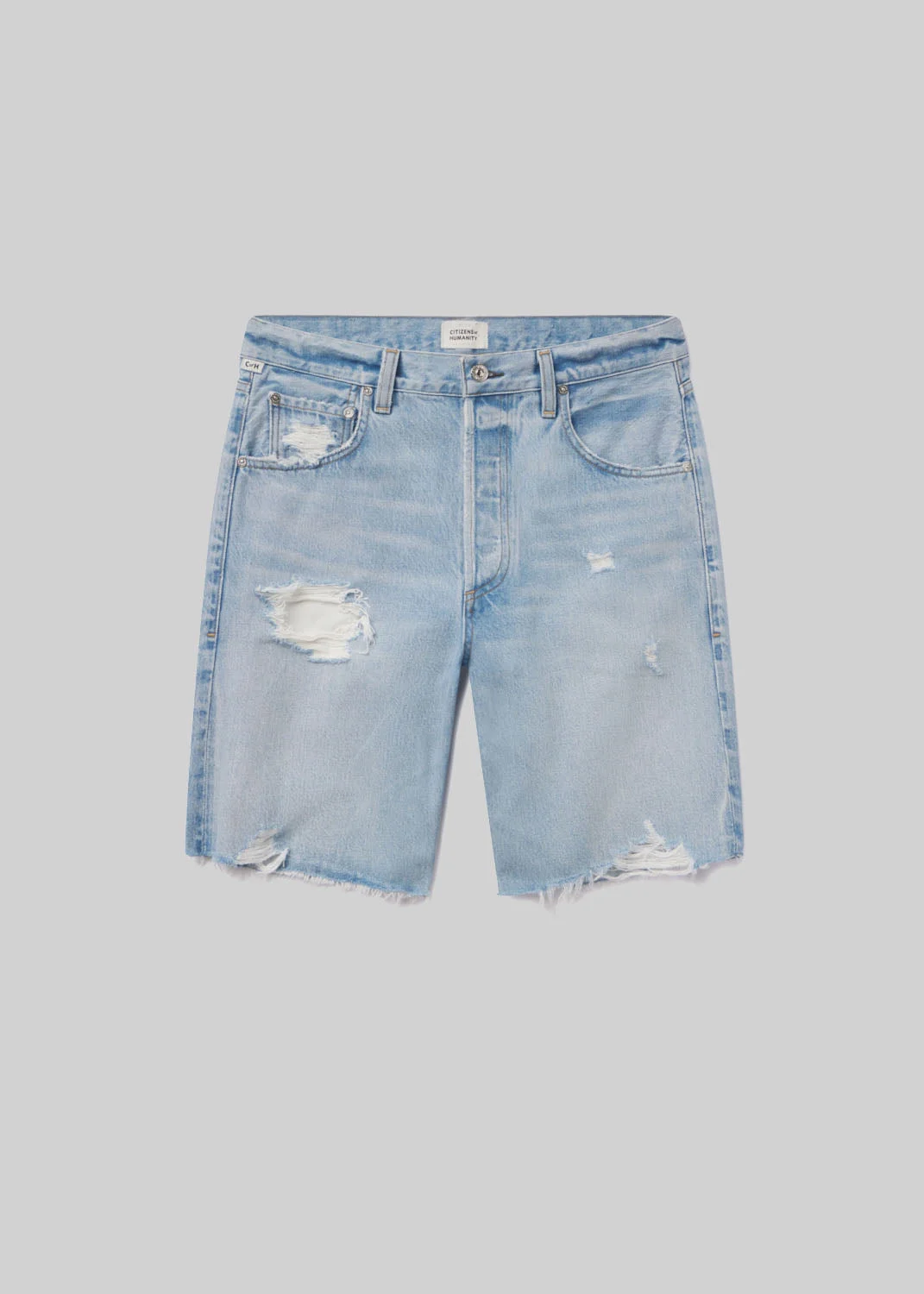 The Ayla Short, inspired by our best-selling Ayla Baggy, offers the perfect balance of ease and versatility. Designed with a relaxed fit and a just-right inseam, it transitions effortlessly from beachside lounging to an elevated evening look. Crafted from 100% cotton, this essential short pairs seamlessly with denim shirting for a chic, head-to-toe statement. This fit is true to size. Looks Like: Light indigo short with raw hem and distressing throughout Feels Like: Rigid, non-stretch blend of regenerative and recycled cotton with a soft hand feel This product is made with regenerative cotton from Citizens of Humanity Group’s Regenerative Cotton Program. Our program collaborates closely with farmers both domestically and internationally, nurturing growth, fostering education, and encouraging the widespread adoption of regenerative agricultural practices. From our HUMANITY Collection DETAILS Closure: Button Fly Rise: 12" Inseam: 10" Leg Opening: 23 1/2" Model is 5'10 and wearing a size 27 Fabric: 67% Regenerative Cotton 22% Recycled Lyocell 11% Post recycled cotton Care Instructions: Machine wash cold inside out with like colors. Do not bleach. Tumble dry low. Made in Turkey with imported materials 2118-3025_PGODA