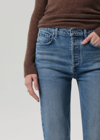 The ‘Blaine’ features a high rise and vintage-inspired straight leg with a clean, ankle-grazing inseam. The ‘Lyon’ wash is a versatile medium indigo with fading and whiskering, crafted from Japanese comfort-stretch denim that blends structure with softness. Designed for all-day ease, it pairs effortlessly with crisp shirting or casual knits. This fit is true to size. Looks Like: Medium indigo denim pant Feels Like: Japanese comfort stretch, archive denim with a super soft hand for all day wearability From our HUMANITY Collection DETAILS Closure: Button Fly Rise: 11 1/2" Inseam: 29" Leg Opening: 15 1/4" Model is 5'10" and wearing a size 27 Fabric Content: 98% Cotton 2% Polyurethane Care Instructions: Machine wash cold inside out with like colors. Do not bleach. Tumble dry low. Made in USA with imported materials 2197-1078_LYON