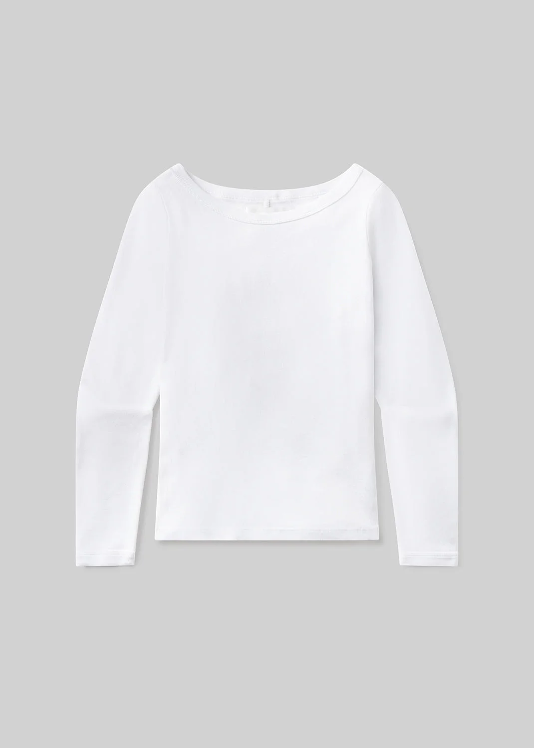 A polished update to a timeless staple, the Boatneck Slim Tee is crafted from a soft, shape-retaining rib cotton blend. The refined boat neckline and slim silhouette offer an elevated foundation that pairs effortlessly with denim or structured trousers. This fit is true to size. Looks Like: Clean white slim long sleeve boat neck tee Feels Like: Rib cotton blend with the softest hand From our HUMANITY Collection DETAILS Body Length: 21 1/2" Chest: 27 3/4" Sleeve Length: 20" Model is 5'10" and wearing a size Small Fabric Content: 100% Cotton Care Instructions: Machine wash cold inside out with like colors. Do not bleach. Tumble dry low. Made in USA with imported materials 9467-1666_WHT