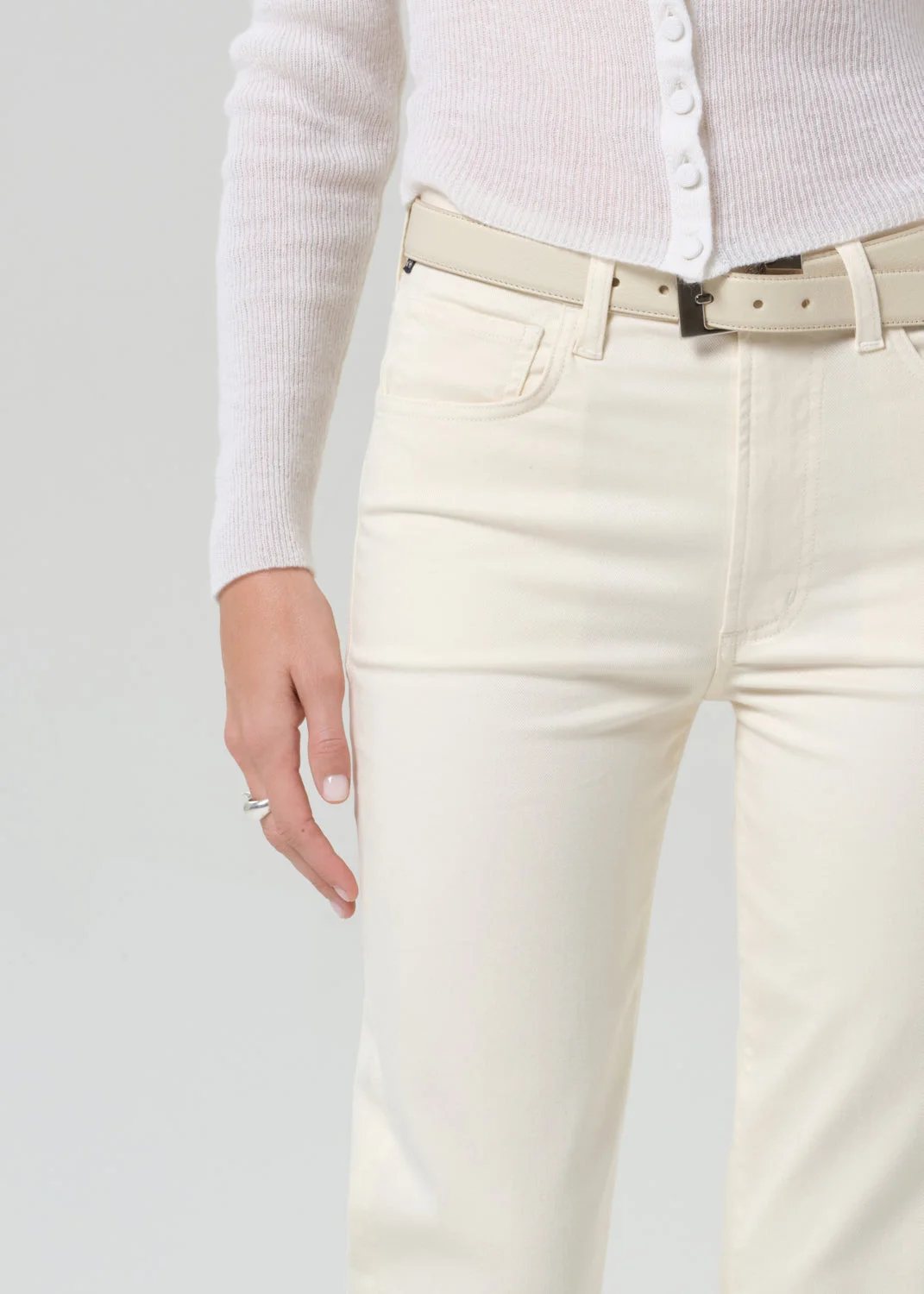 The Caia High Rise Straight is a refined take on the classic slim straight silhouette. Part of our Soft Stretch collection, it offers an ultra-soft feel with lasting hold, ensuring both comfort and a flawless fit. A versatile essential, it pairs effortlessly with everything from a crisp button-down to a relaxed knit for an effortlessly polished look. This fit is true to size. Looks Like: Light cream off white pant Feels Like: Signature twill fabric that mimics the ultra luxurious feel of cashmere From our HUMANITY Collection DETAILS Closure: Zip Fly Rise: 11" Inseam: 27 1/2" Leg Opening: 14 3/8" Model is 5'10" and wearing a size 27 Fabric Content: 49% Lyocell 49% Cotton 2% Elastane Care Instructions: Machine wash cold inside out with like colors. Do not bleach. Tumble dry low. Made in Turkey with imported materials 2173-1839_PLSTR