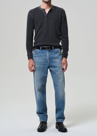 The Carpenter Jean is a relaxed vintage taper fit—easy through the waist with a straight line that narrows subtly from hip to hem. Part of our Premium Vintage Collection, it honors traditional craftsmanship with European and Japanese denim, blending 100% cotton and slight-stretch fabrics for modern comfort. Authentic, versatile, and enduring—a refined take on heritage workwear. This fit is true to size. Looks Like: Medium indigo denim Feels Like: Rigid, non-stretch cotton denim with a soft hand for all day wearability This product is made with regenerative cotton from Citizens of Humanity Group’s Regenerative Cotton Program. Our program collaborates closely with farmers both domestically and internationally, nurturing growth, fostering education, and encouraging the widespread adoption of regenerative agricultural practices. From our HUMANITY Collection DETAILS Closure: Zip Fly Rise: 12" Inseam: 30" Leg Opening: 15" Model is 6'1" and is wearing a Size 31 Fabric Content: 100% Regenerative Cotton Care Instructions: Machine wash cold inside out with like colors. Do not bleach. Tumble dry low. Made in USA with imported materials 7038-3017_TWNCD