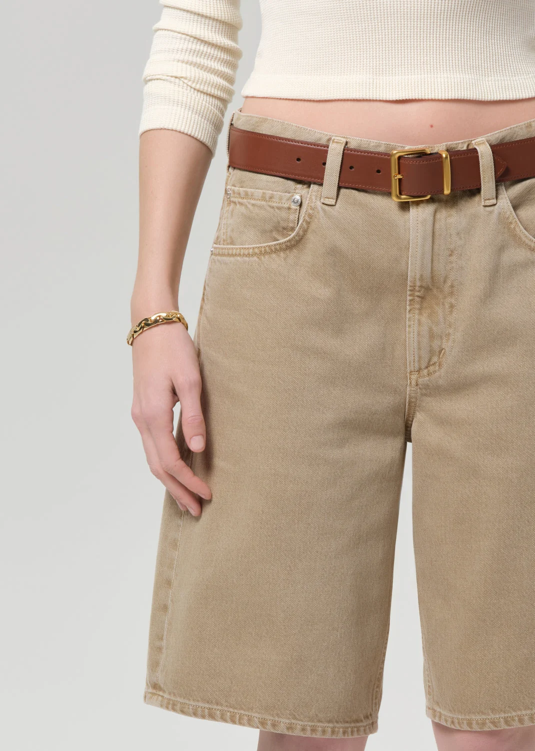 A refined essential, the Court Short blends effortless ease with elevated tailoring. Crafted from rigid denim, its relaxed fit and perfect inseam create a polished yet comfortable silhouette—ideal for beachside escapes or sophisticated evening styling. Pair with a denim shirt or tonal separates for understated, modern staple. This fit is true to size. Looks Like: Beige long denim short Feels Like: Rigid, non-stretch denim with an authentic feel From our HUMANITY Collection DETAILS Closure: Button Fly Rise: 22 1/2" Leg Opening: 11" Body Length: 11 7/8" Model is 5'10 and wearing a size 27 Fabric Content: 100% Cotton Care Instructions: Machine wash cold inside out with like colors. Do not bleach. Tumble dry low. Made in Turkey with imported materials 2282-1248_CLINA