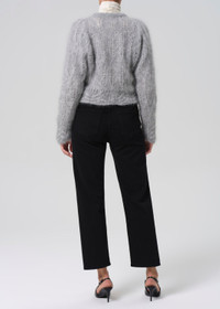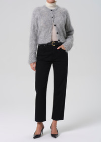 A high-rise straight leg crafted from signature cashmere-blend denim for a super-soft hand. The silhouette sits high on the waist and falls to a full-length straight leg. Finished in clean black, it’s a versatile denim that works just as well for everyday wear as it does dressed up. This fit is true to size. Looks Like: Clean black denim pant Feels Like: Signature denim blended with cashmere for a super soft hand From our HUMANITY Collection DETAILS Closure: Button Fly Rise: 11 1/2" Inseam: 27 1/2" Leg Opening: 15 3/4" Model is 5'10" and wearing a size 27 Fabric Content: 93% Cotton 5.5% Cashmere 1.5% Elastane Care Instructions: Machine wash cold inside out with like colors. Do not bleach. Tumble dry low. Made in Turkey with imported materials 2250-1799_STRLS